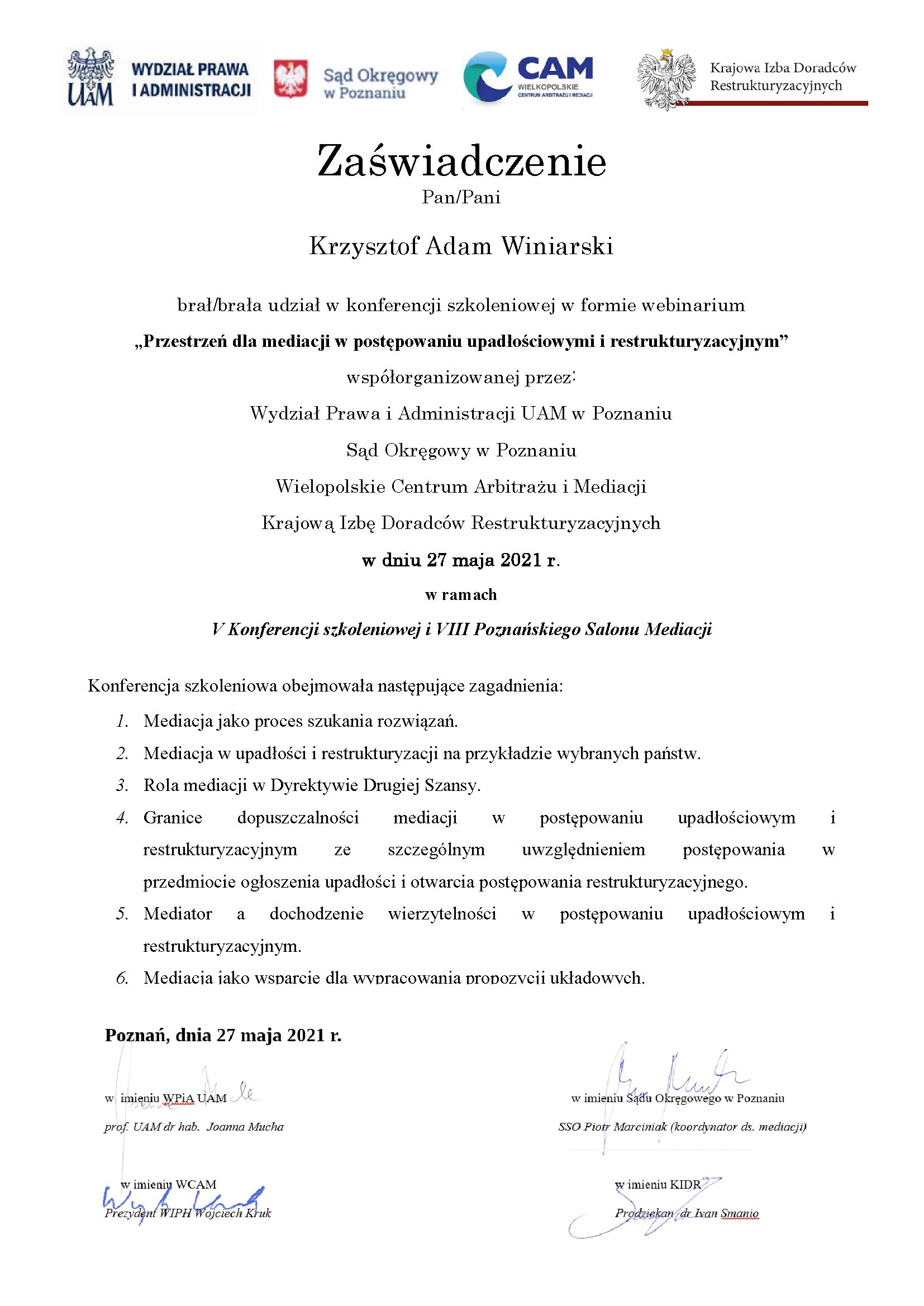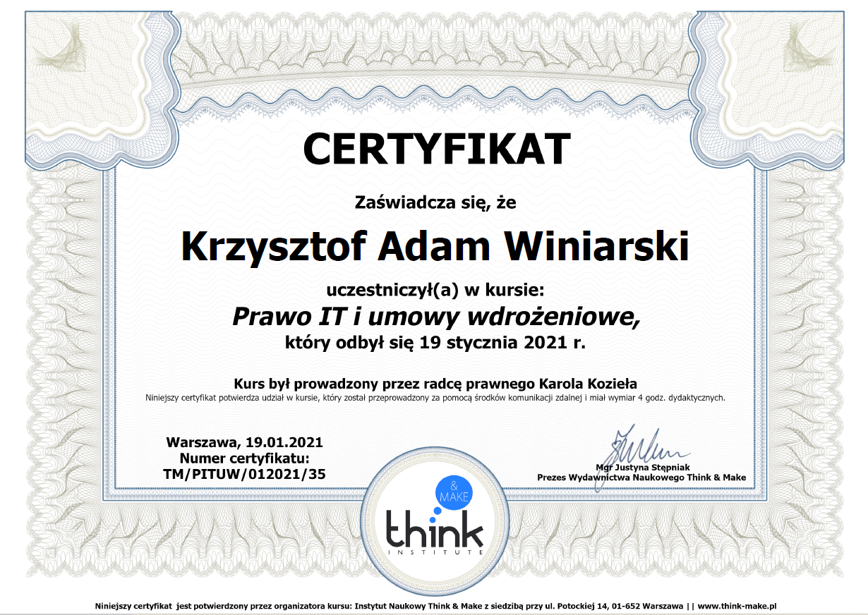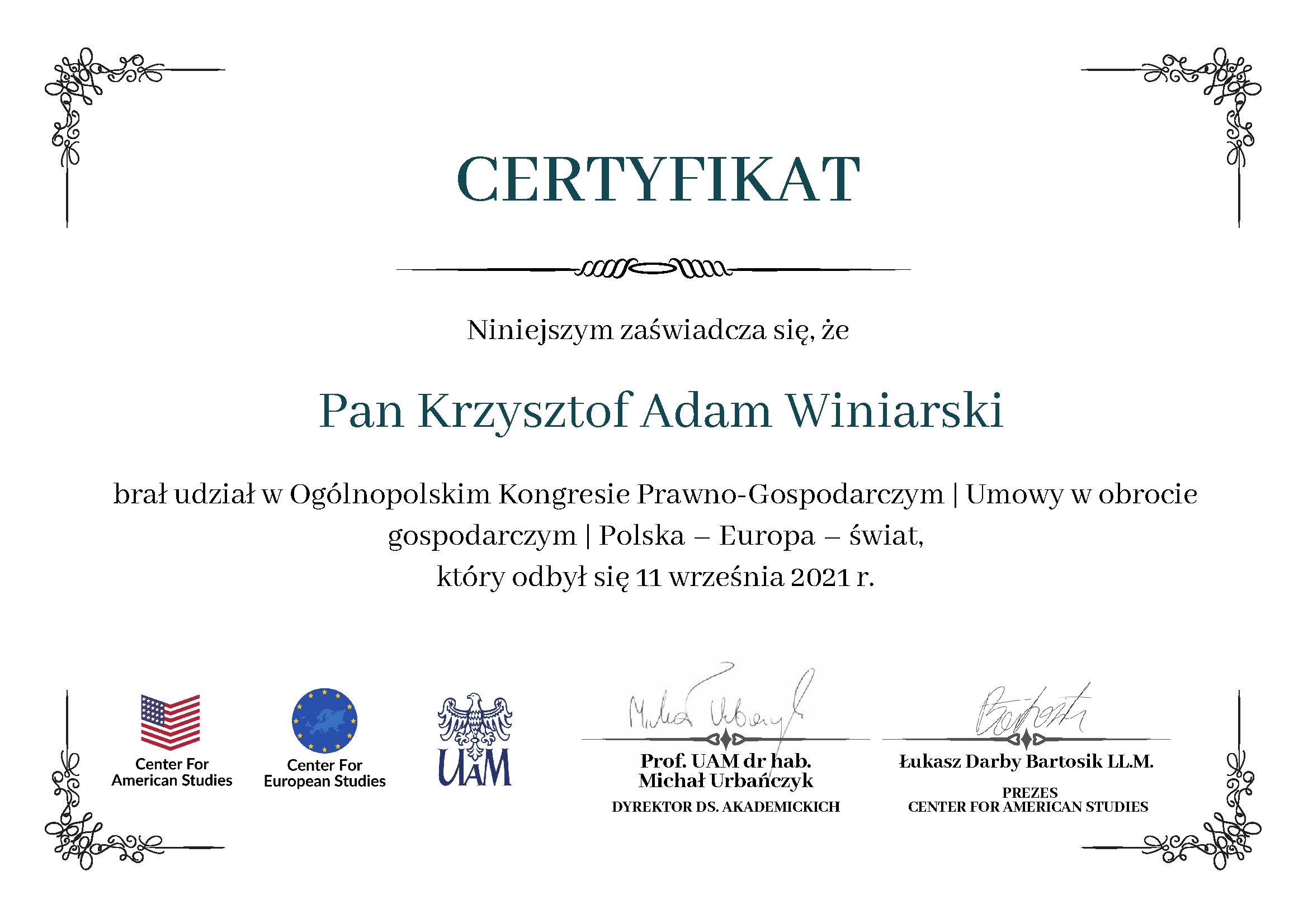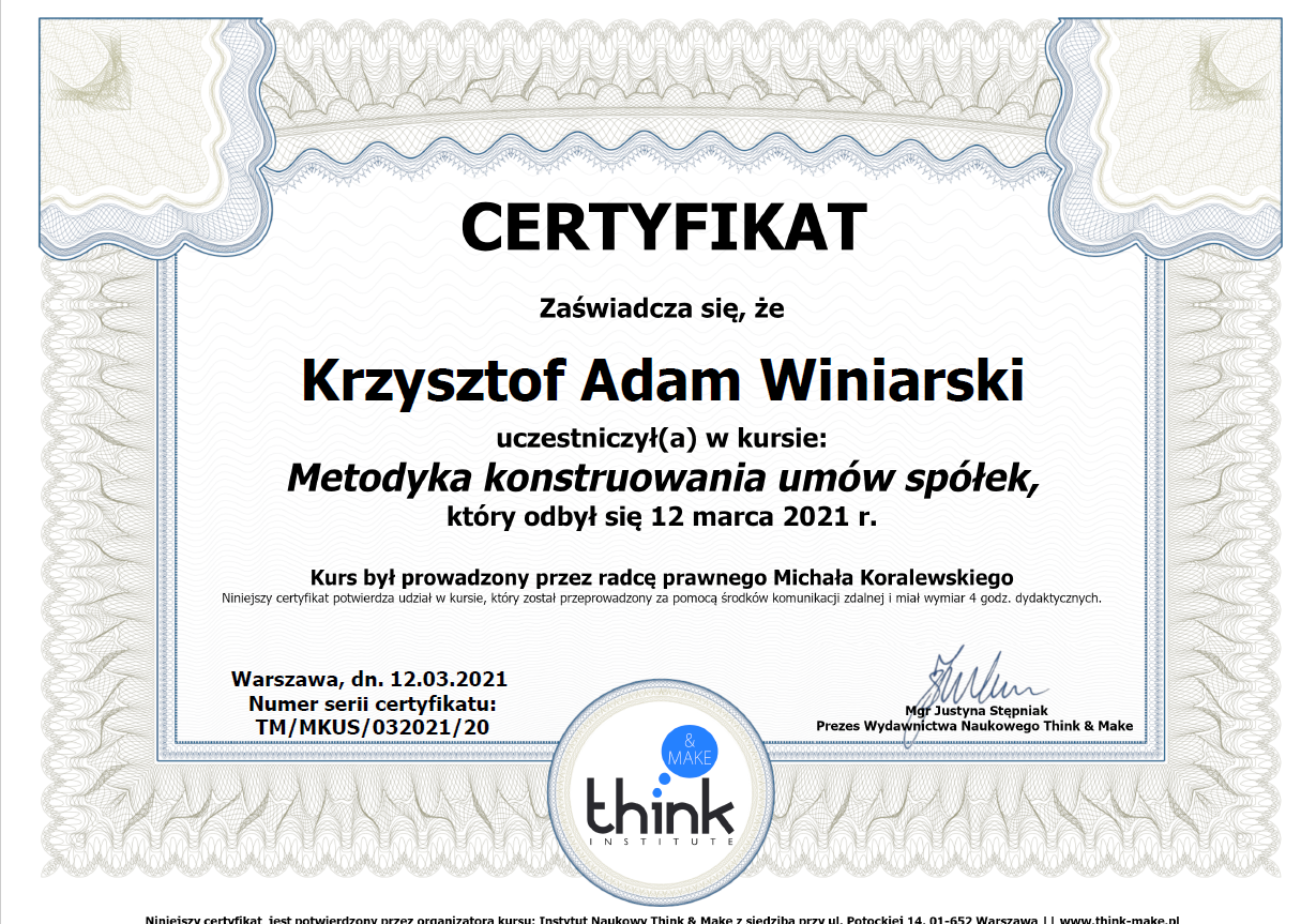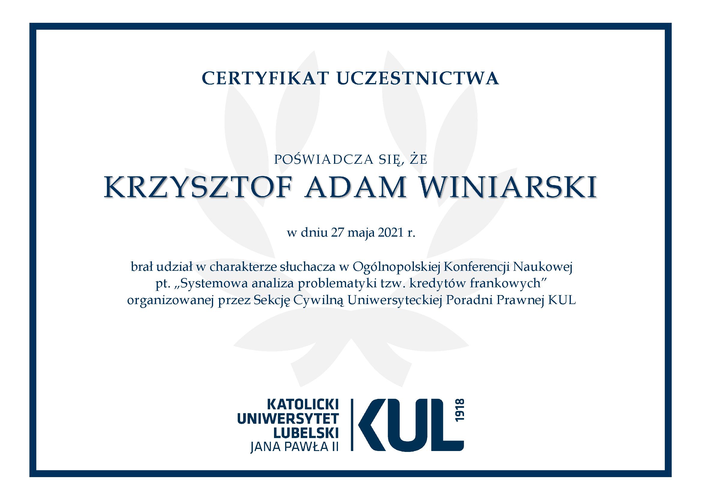 Chcąc zapewnić Państwu jak najlepszą obsługę prawną, informujemy, że nieustannie podnosimy swoje kwalifikacje poprzez udział w szkoleniach, kursach oraz konferencjach. Ostatnio należały do nich: